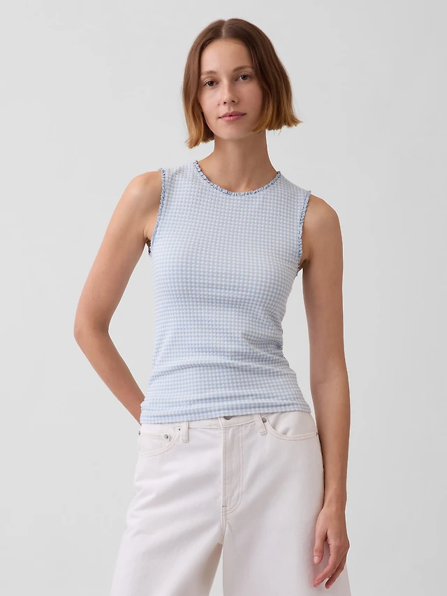Gingham Pointelle Shell Tank Top
