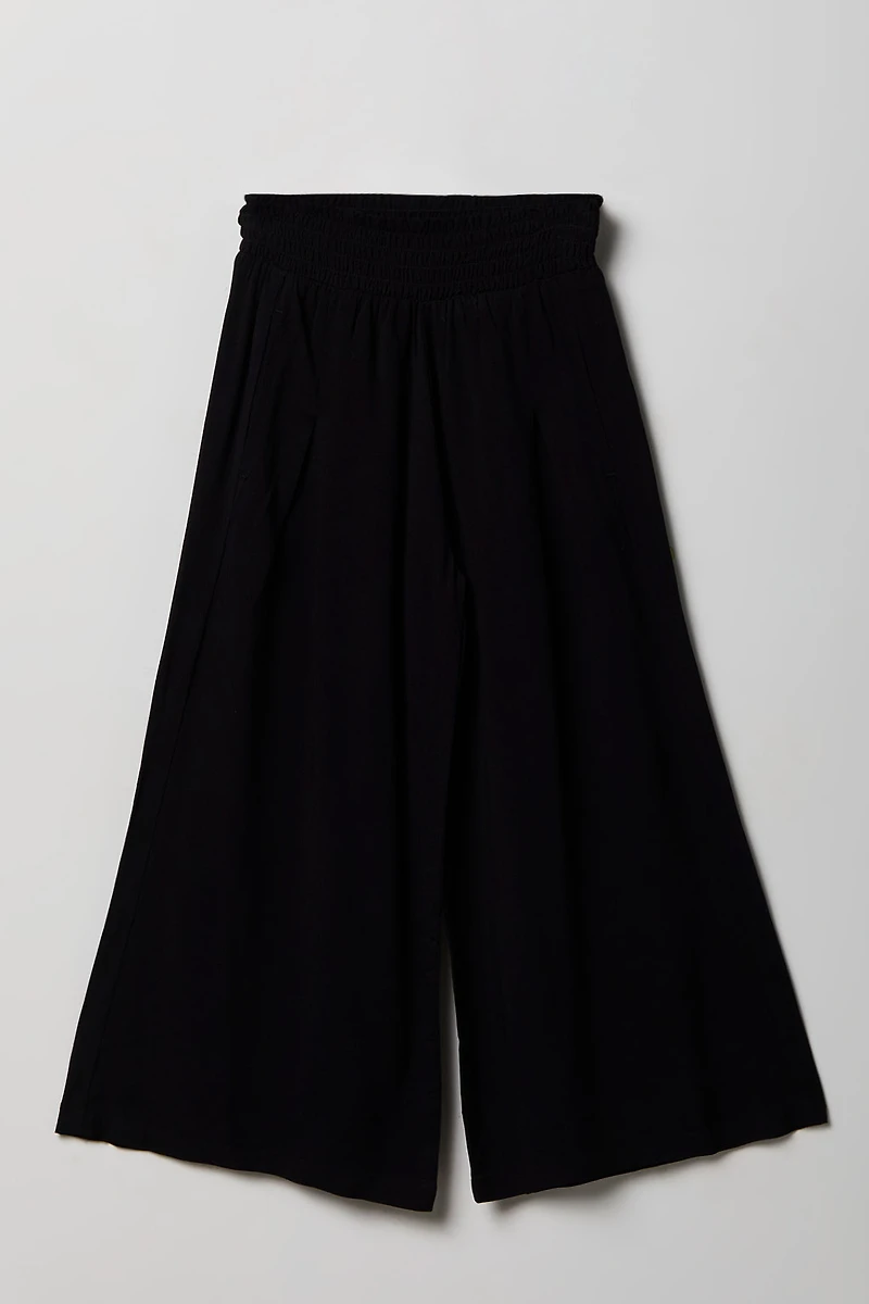 This pant features smocked waist and wide-leg. 100% Rayon Machine Wash in Cold Water - Gentle Cycle with Like Colours - No Bleach - Hang to Dry - Low Iron Imported
