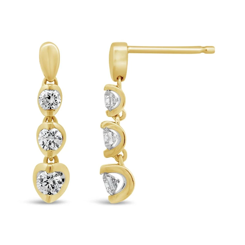 Radiate elegance with the Glacier Fire Canadian 0.50CTW Diamond Three Stone Earrings in 10K Yellow Gold. Featuring three brilliant diamonds in a sleek, timeless design, these earrings symbolize enduring beauty and are the perfect complement to any occasion.