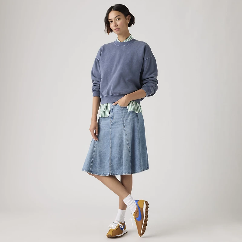 Your favorite denim—now in the perfect knee-length skirt. Our Godet Knee-Length Skirt is designed with a flattering mid rise—all topped off with lightweight denim construction.