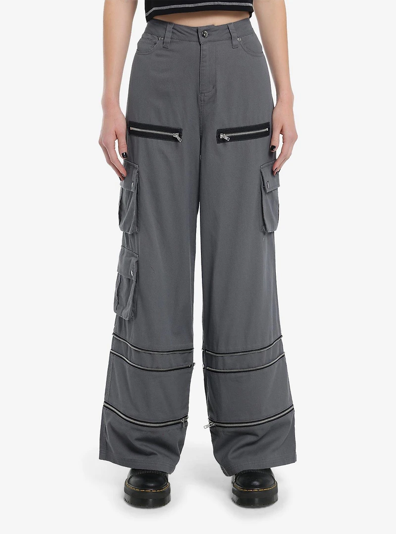 Grey Wide Leg Zip-Off Cargo Pants