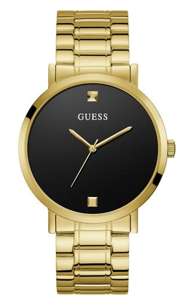 GUESS Mens Black Gold Tone Analog Watch