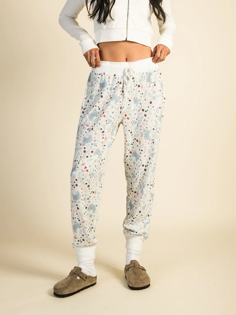 Printed to perfection with adorable details, the Ava lounge pant is fun, cute and oh so soft. Featuring an adjustable tie waist and a ribbed cuff hem.67% Polyester / 28% Rayon / 5% SpandexModel is wearing a size Small.Model Measurements Height: 5'9" Waist: 23" Chest: 32"
