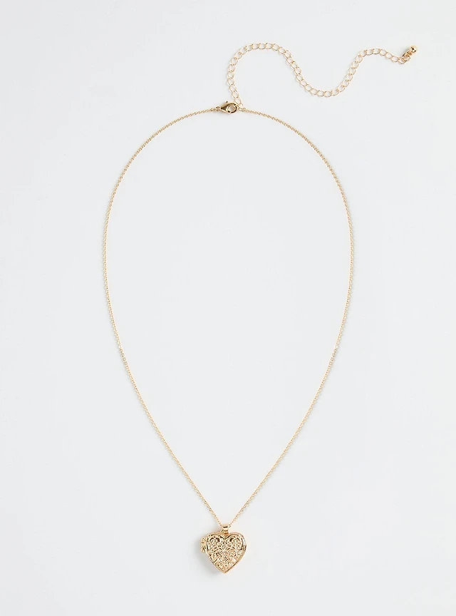 Two-Sided Heart Locket Necklace Charm in Solid 10K Gold