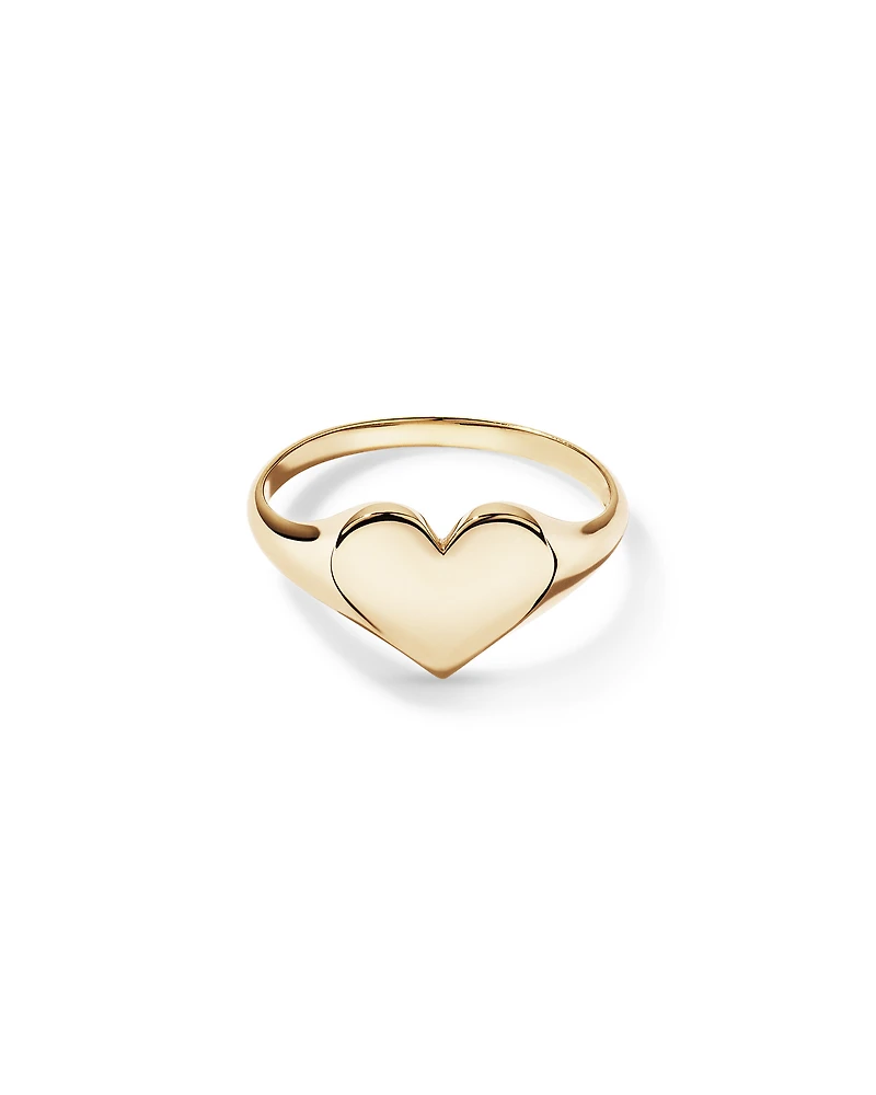 Crafted in solid 10 karat yellow gold, this polished heart signet ring features a softly contoured heart face with a smooth, reflective finish, making it ideal for engraving. Designed with a solid construction, it offers a substantial feel and comfortable everyday wear. A timeless silhouette with a romantic touch, this ring is perfect worn solo or layered with your favourite gold bands for a modern, personal look.