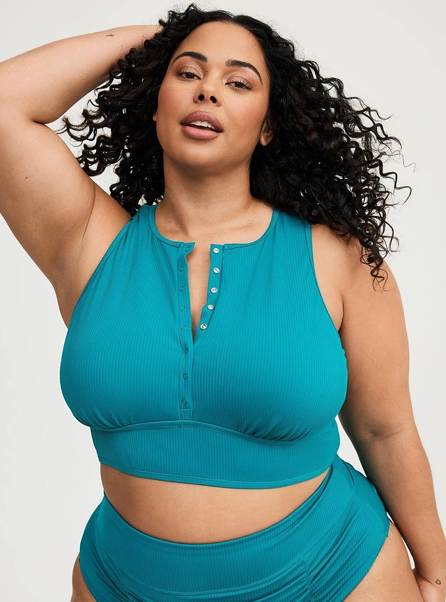 SOLID Recycled Fibers Ribbed High-Neck Bralette Bikini Top