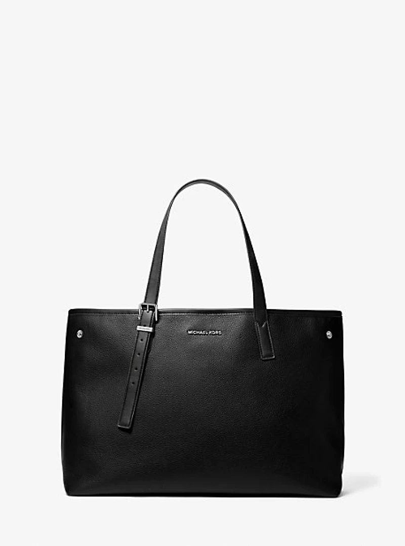 Designed to keep up with life on the go, the hudson tote is a softly structured bag crafted from pebbled leather and finished with our subtle logo hardware. It opens up to a spacious interior that includes a set of pockets for keeping your keys and phone secure. Buckle-fastening top handles let you customize the drop for comfortable, all-day carry.