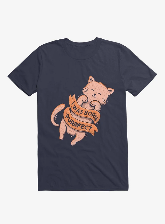 I Was Born Perfect Cat Navy Blue T-Shirt