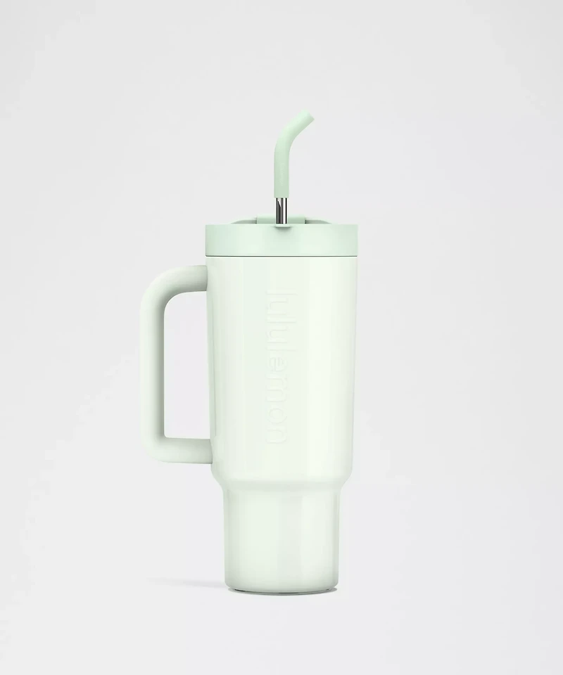 Your new hydration bestie. This easy-carry tumbler gives you options: take icy cold sips from the stainless steel straw or swig from the secure lid flap.