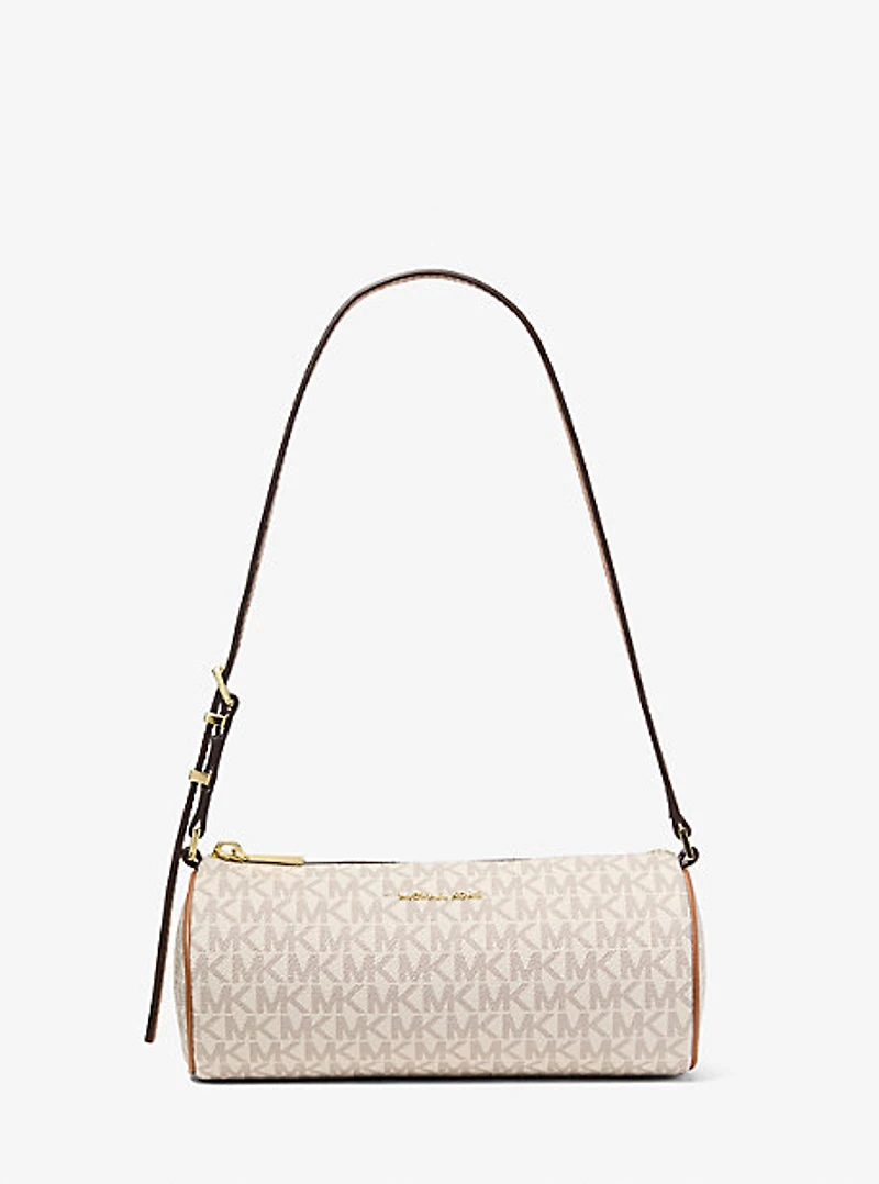 Designed in a slim ‘90s-inspired barrel silhouette that rests neatly under your arm, our izzy shoulder bag is crafted from signature logo-print canvas with smooth trim. The compact, zip-fastened interior makes it a perfect nighttime companion.