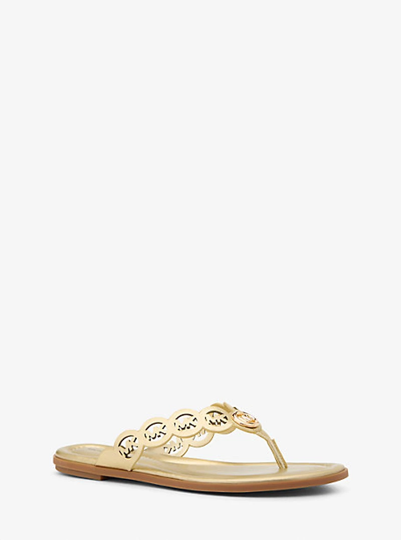 Janie Perforated Logo Metallic Leather Sandal