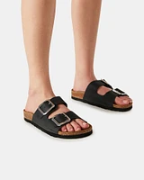 Elevate your style with the JESSE slide sandals! These footbed sandals feature a chic buckle detail for a touch or sophistication. Perfect for all-day wear, the slip-on design offers both comfort and style.