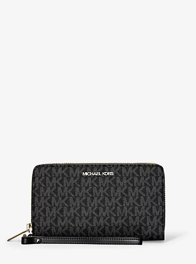 Jet Set Large Metallic Signature Logo Stripe Smartphone Wallet