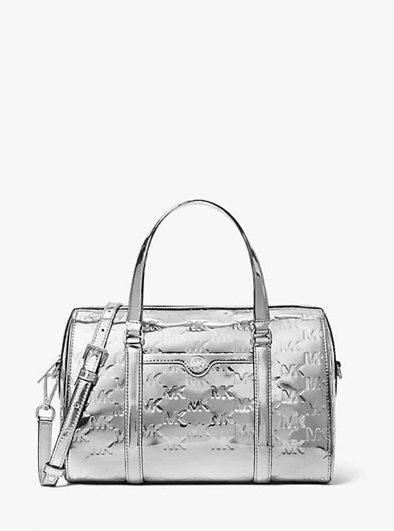 Jet Set Medium Patent Logo Debossed Duffel Crossbody Bag