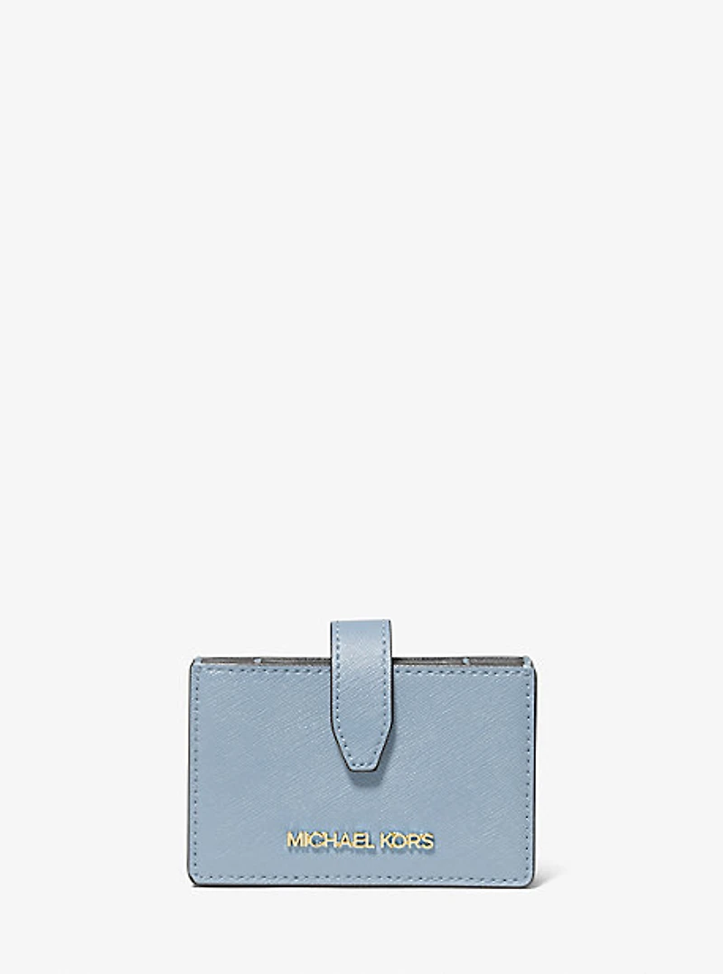 Accordion side gussets update this jet set card case with functional and stylish appeal while gilded hardware adds a luxe finish. We love how the slender silhouette can be slipped into the matching saffiano leather tote (and so much more).