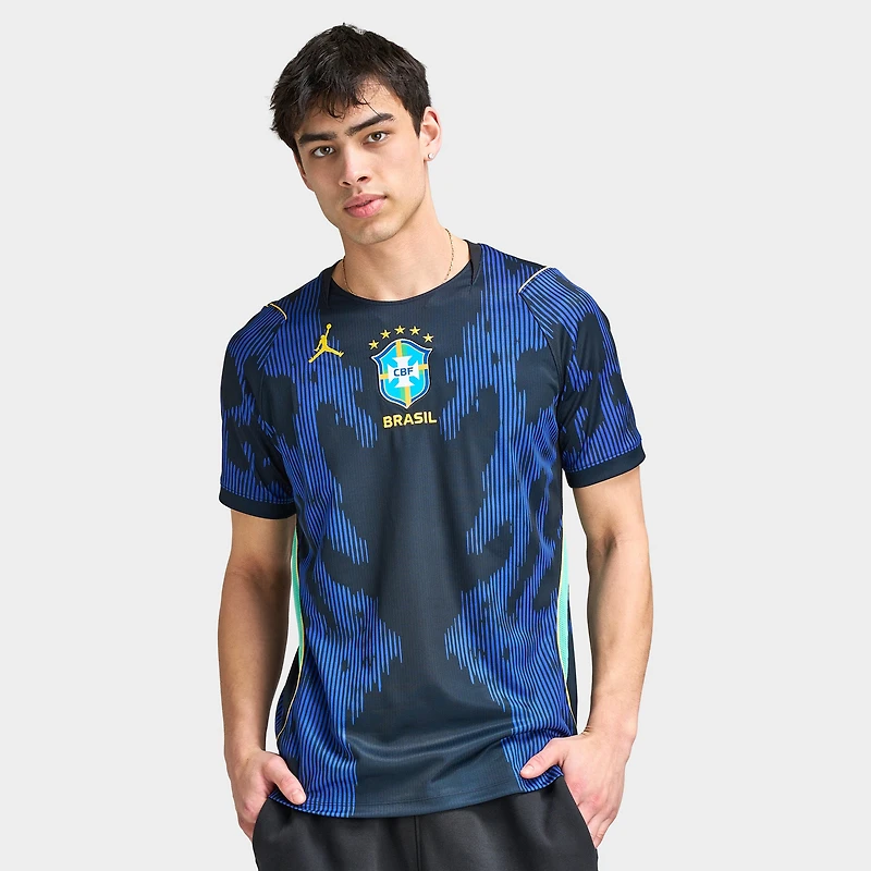 Lightweight performance fabric delivers breathable comfort on the move Classic football jersey design brings authentic match-day energy Brazil team details add a proud, iconic finish No sponsor branding for a sleek, streamlined look Rep Brazil in a clean, classic fit with the Jordan CBF Away Jersey. Built for comfort whether you’re playing, training, or watching from the sidelines, this jersey keeps things lightweight and easy to wear all day. Finished in an Old Royal and Black colourway with official Brazil details and zero sponsor branding, it’s pure national-team style, no distractions, just pride. Product code: IU1072-417