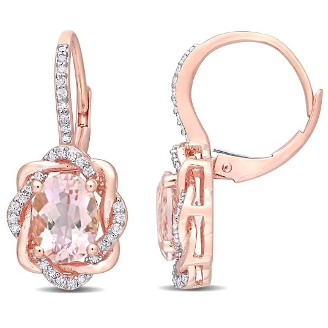 Julianna B 10K Rose Gold Morganite & Diamond Leverback Earrings