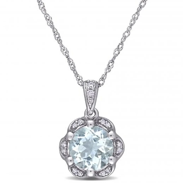 Julianna B 14K White Gold Aquamarine and Diamond Accent Flower Necklace