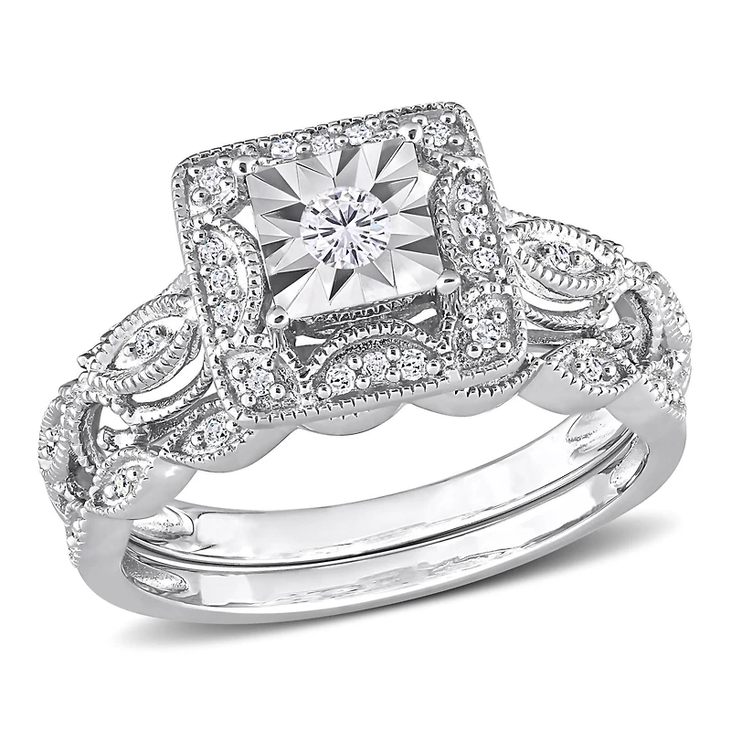Julianna B Sterling Silver 0.20CTW Diamond Bridal Set