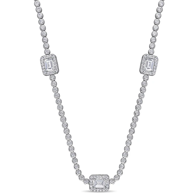 Julianna B Sterling Silver Cubic Zirconia By The Yard Station Necklace