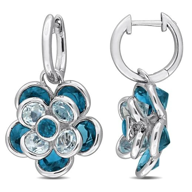 Julianna B Sterling Silver London Blue & Sky Blue Topaz Flower Earrings