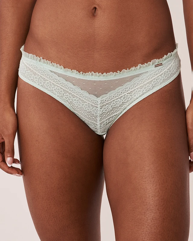 Bow-Detail Mesh and Lace Trim Thong Panty