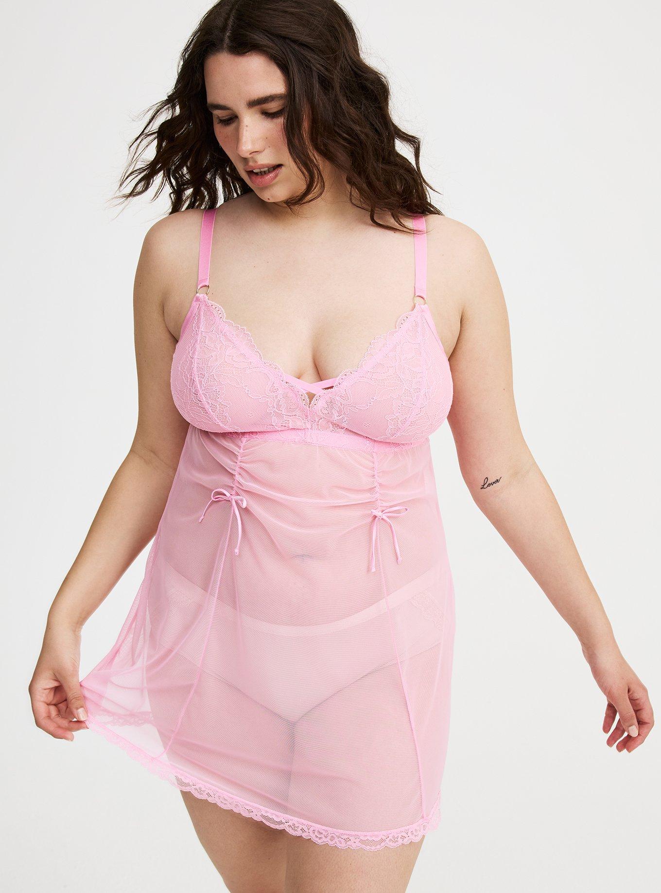 FIT Fit and flare silhouette. Wireless. MATERIALS + CARE Lace and mesh knit fabric. Machine wash cold. Line dry. Imported. DETAILS Sheer. Adjustable straps. Tie details.