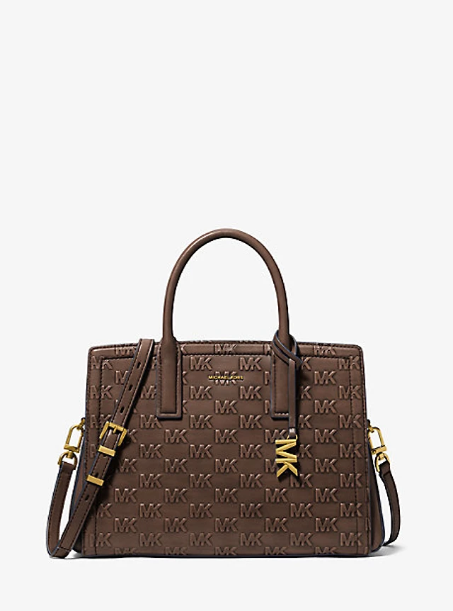 Laila Medium Logo Embossed Burnished Leather Satchel