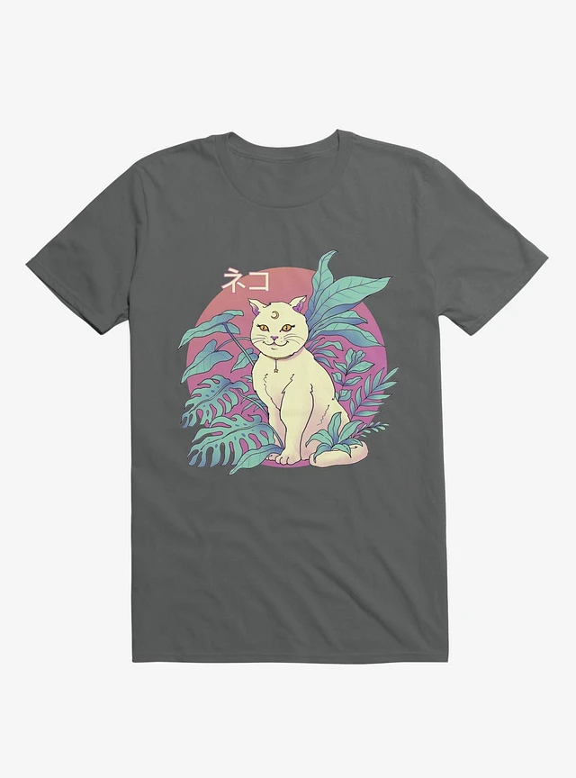 Leaves Vapor Cat Charcoal Grey T-Shirt