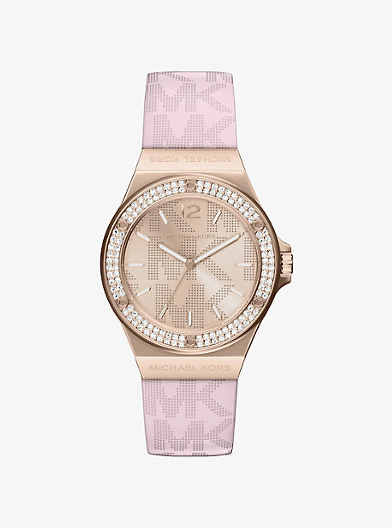 Lennox Pavé Rose Gold-Tone and Logo Silicone Strap Watch