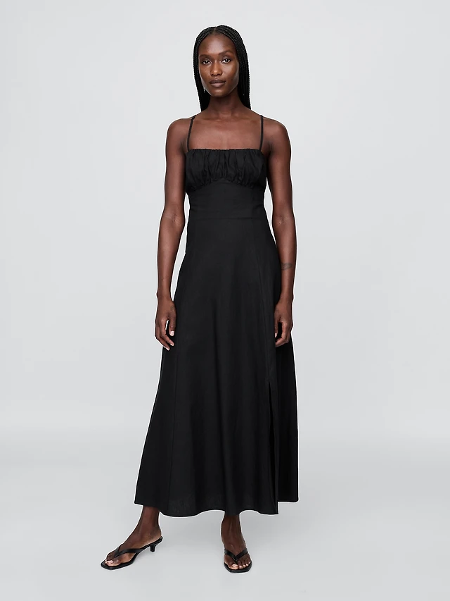 Linen-Blend Drop-Waist Corset Maxi Dress