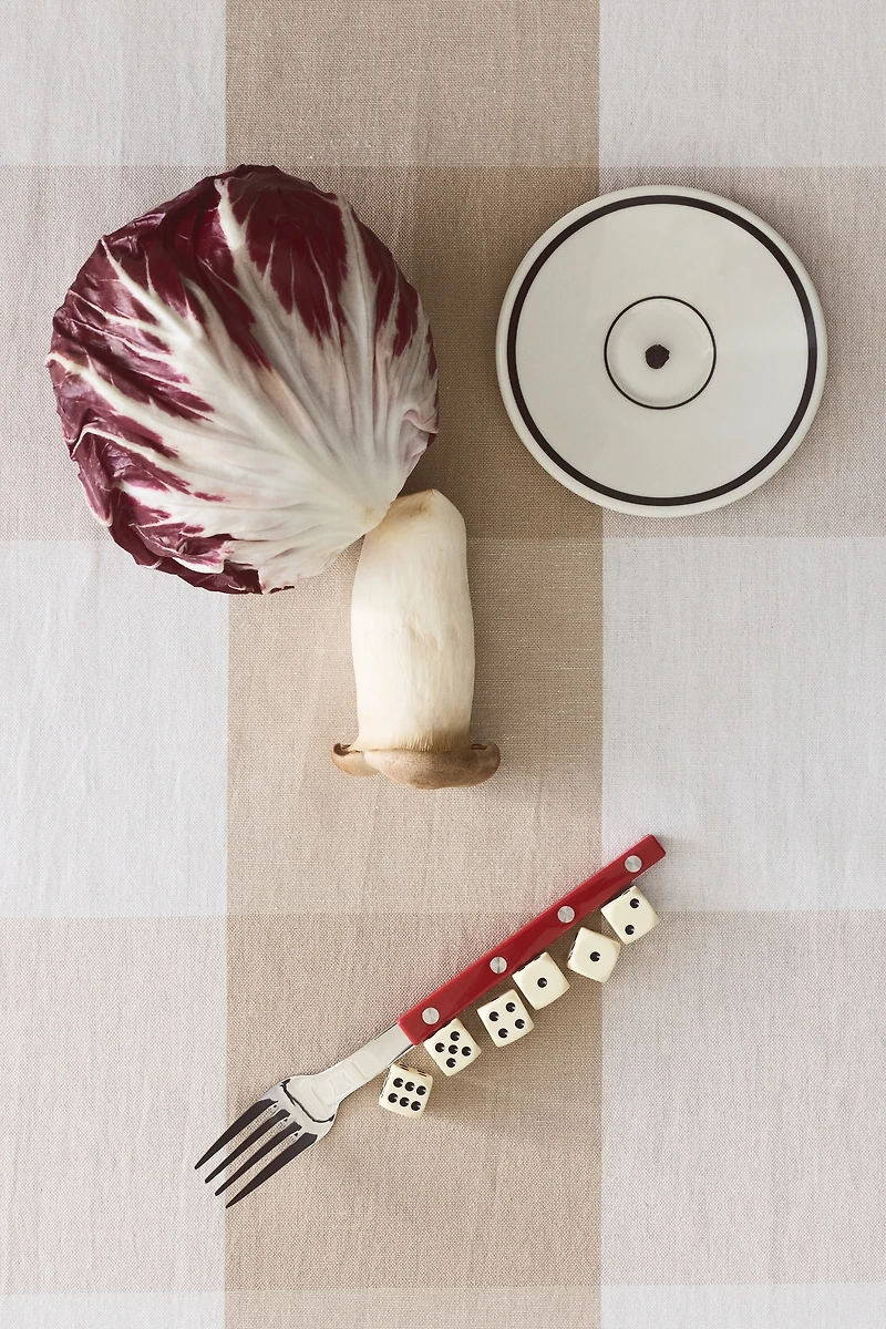 Classic, patterned tablecloth in a woven linen and cotton blend.