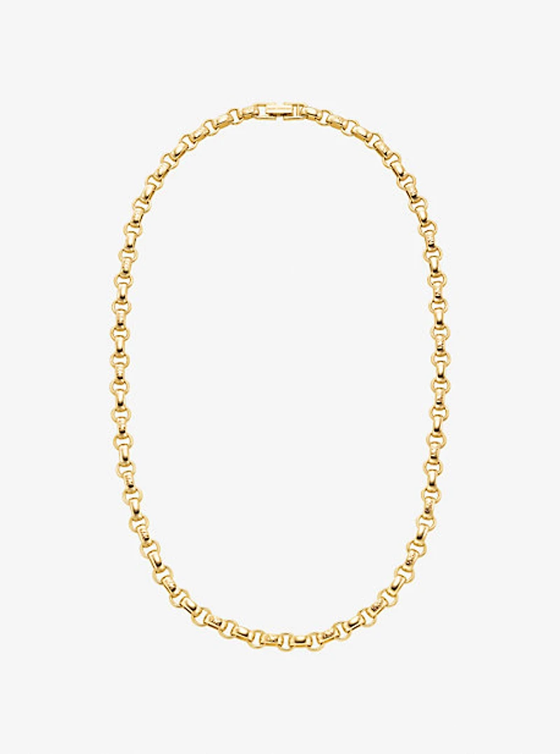 A tough-luxe take on signature glamour, this necklace is composed of polished chain links accented with our iconic logo initials. Complement its shine by adorning your hand with more lustrous rings.