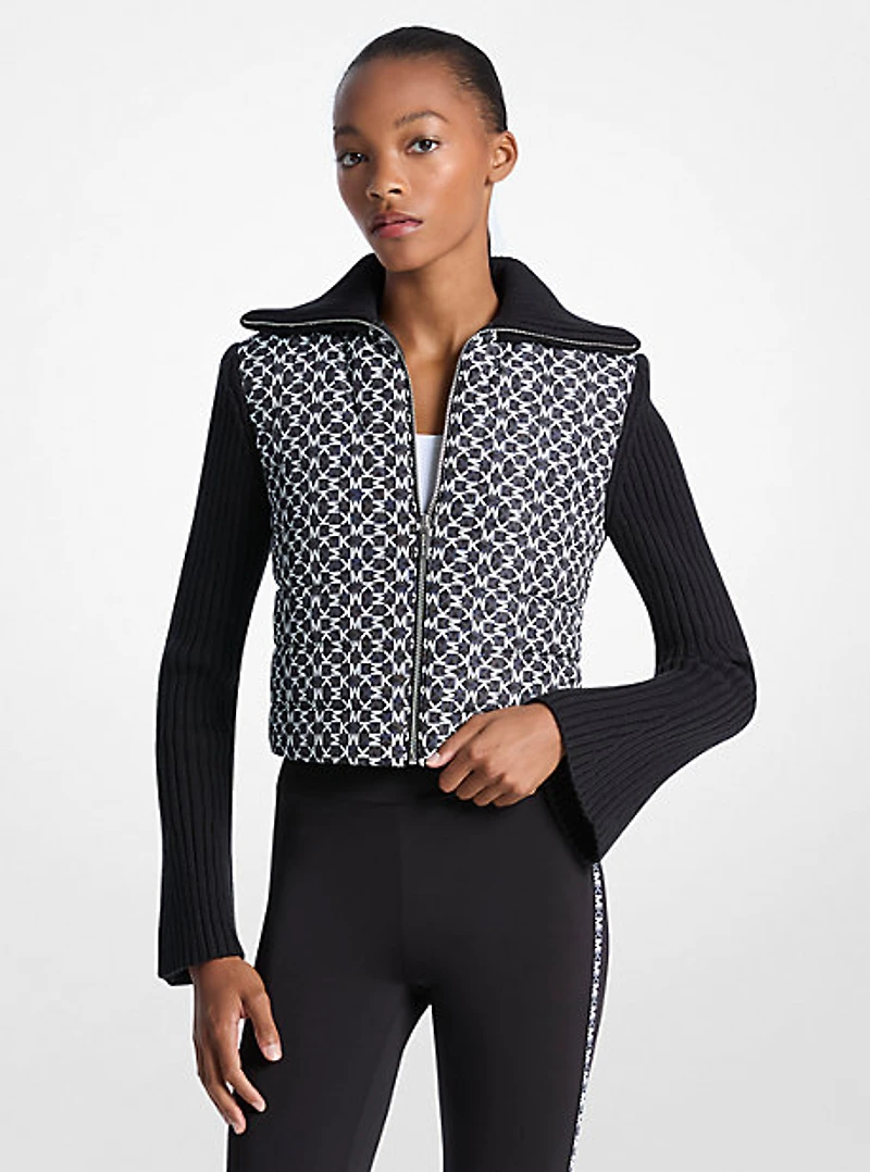 Jacket, knit/polyester, fabric 1: 100% polyester, fabric 2: 58% cotton/38% acrylic/1% elastane/3% others, lining: 100% polyester, zip fastening, machine wash, imported, model is 5'10"/177 cm wearing size xs