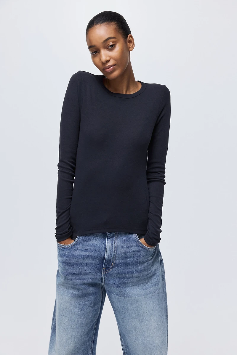 Fitted top in cotton jersey. Round neckline and long sleeves.
