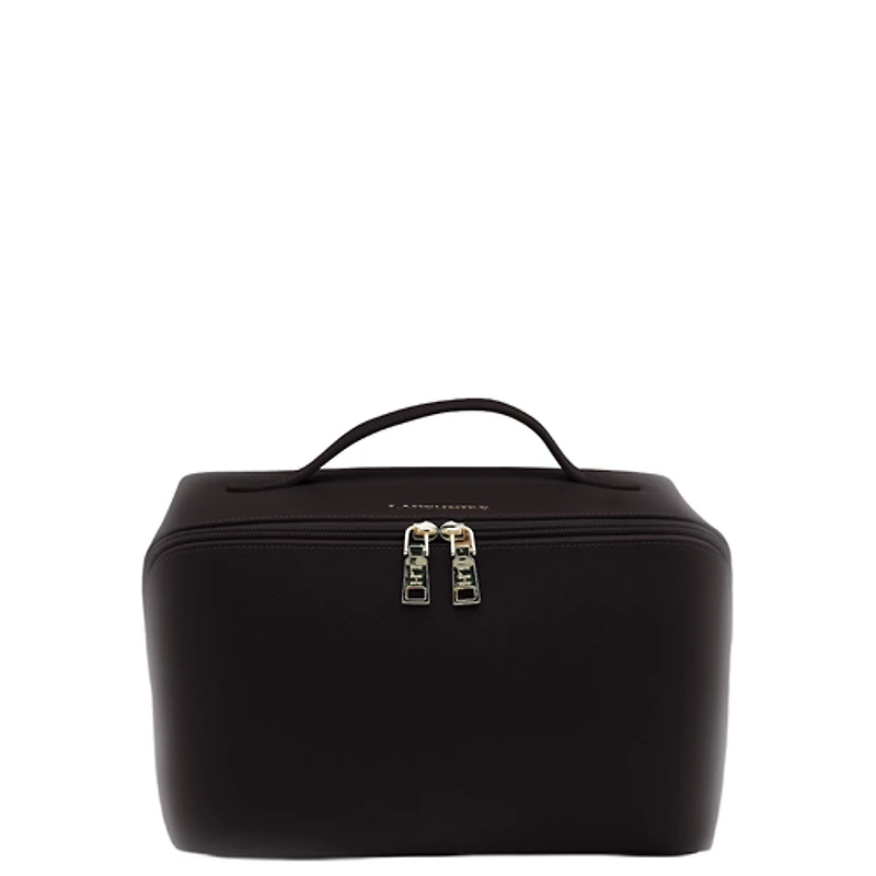 The Louenhide Orion Cosmetic Case was designed with ultimate convenience and organization in mind. No more digging around or struggling to find what you need, with its wide opening and unique silhouette, this large toiletry bag opens to lie completely flat on any counter, giving you easy access to all your toiletries at once. The Orion Cosmetic Case features 2 main compartments, 1 zip pocket and 3 slip pockets, ensuring each item has its designated spot. Whether you are a jetsetter, or simply seeking a well-organized solution for your beauty essentials, the Orion Case is the answer to all your needs. Details Internal features: Zip pocket, 3 slip pockets, 2 compartments Materials: Body: Polyurethane vegan leather Lining: Recycled polyester Secure zip closure Dimensions: 11"W x 7"H x 7"D