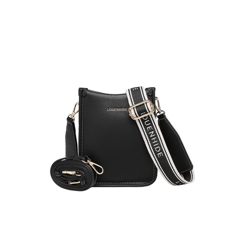 The Louenhide Parker Logo Phone Bag effortlessly combines an elevated aesthetic with everyday functionality. Whether you're heading to the office, running errands or meeting friends for coffee, this mini crossbody bag will be your new go-to. Parker features an on-trend and modern silhouette, enhanced by the contrasting stitch details in three classic colourways. Elevate your style with the statement logo webbing guitar strap or keep it minimalistic with the matching vegan leather crossbody strap. Keeping your essentials at your fingertips has never been easier with the back side slip pocket. This women’s phone crossbody bag is sure to be your new hands-free go-to no matter the occasion.