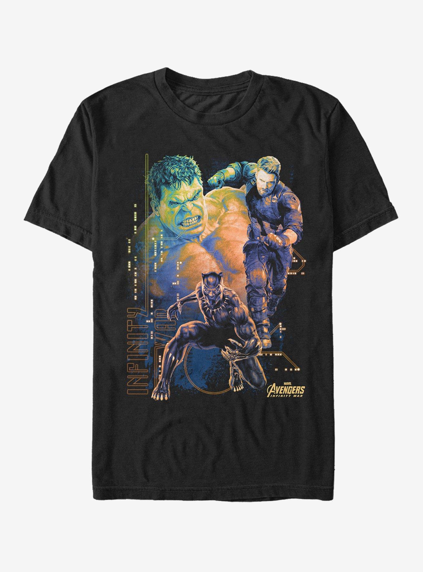 Dress like a hero with the Marvel Avengers: Infinity War Heroes Men's T-Shirt. The Hulk, Captain America, and Black Panther are printed in cool rainbow print on this epic Infinity War tee.