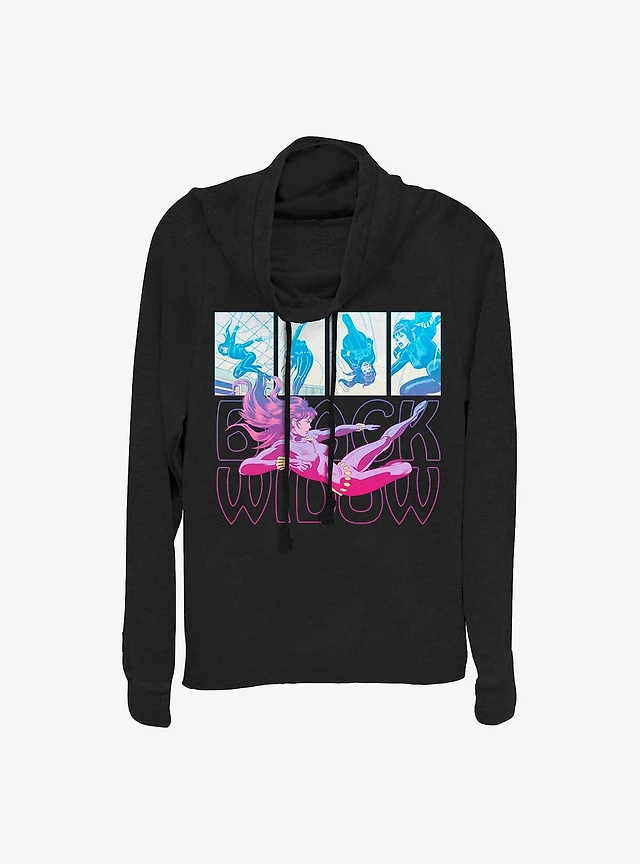 Marvel Black Widow Shapes Cowlneck Long-Sleeve Girls Top