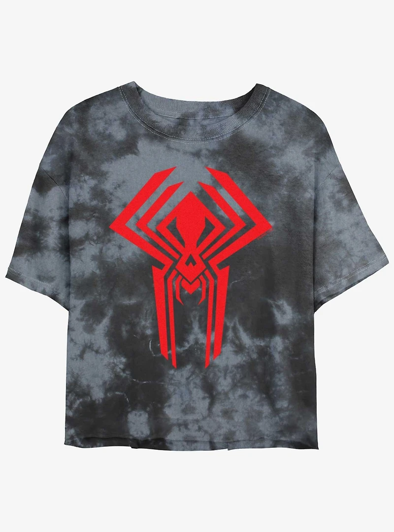 Marvel Spider-Man Spider Symbol Girls Tie-Dye Crop T-Shirt