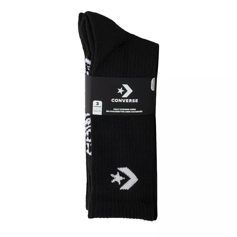 Add a cool edgy street vibe by rocking these men’s Converse 3-pack black crew socks with your favourite high-tops and low-tops, and skate sneakers. Made of polyester and spandex, these socks have a crew length and ribbed construction, ventilation a the toe for breathability, and iconic Star Chevron detail.