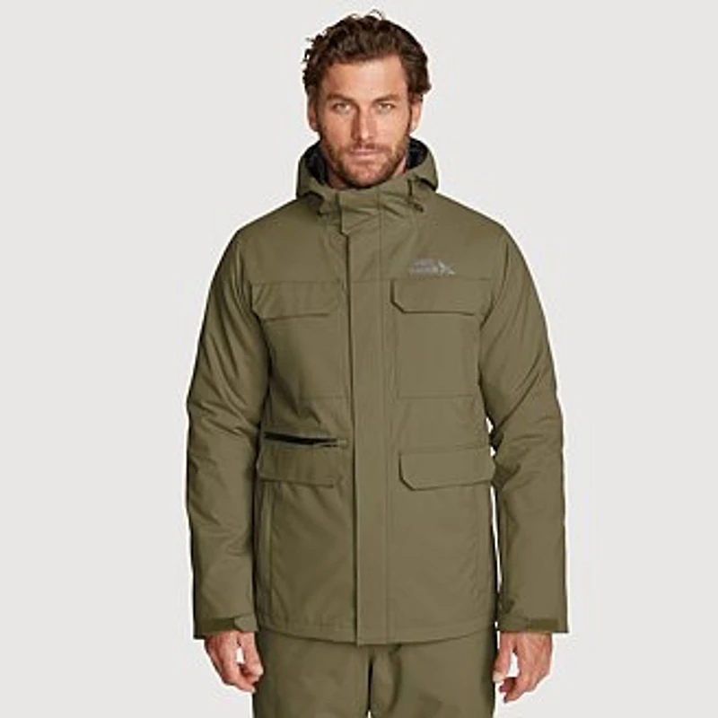 This waterproof outer layer keeps you dry with sealed seams and a durable moisture-shedding finish. The adjustable hood and cuffs keep heat in and snow out, while the powder skirt keeps you dry so you can focus on your lines while the snow is falling. Models shown are 6'0" to 6'2" tall, wearing size M/32x32.