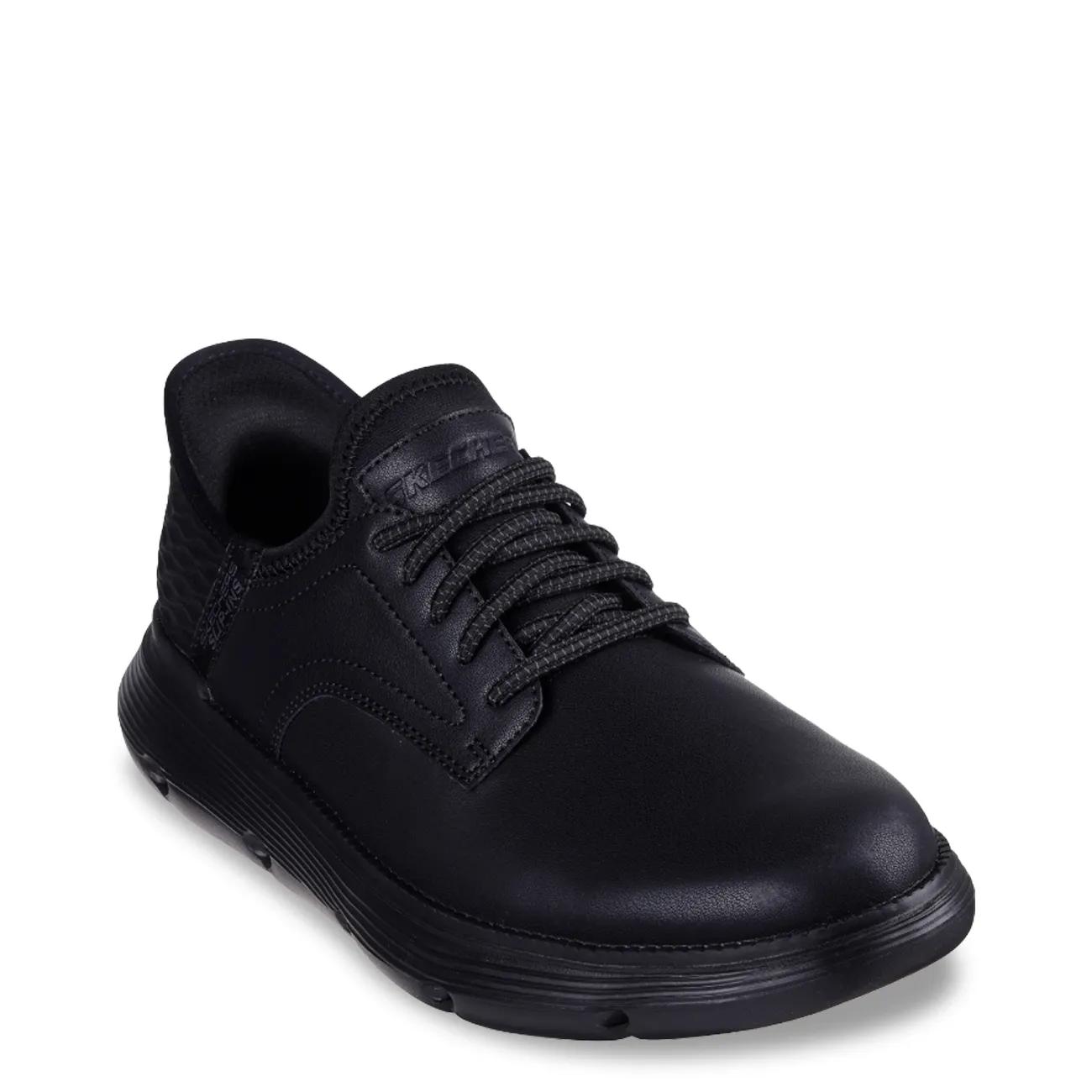 Master your efficiency with a comfortable business casual look wearing Skechers Hands Free Slip-ins®: Garza - Gervin. This TOUCHLESS FIT® Oxford style features a smooth leather upper with stretch laces, a Skechers Slip-ins® molded heel panel, a charcoal-infused Skechers Air-Cooled Memory Foam® insole, and a Skechers Goga Mat Arch™ for added support.