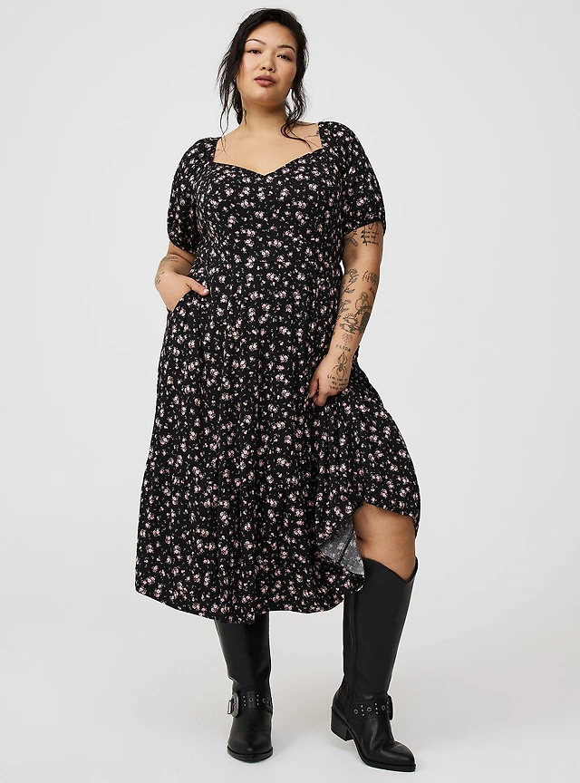 Floral Puff Sleeve Midi Dress