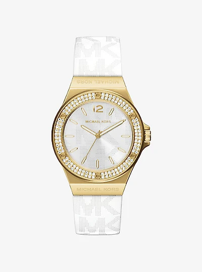 Lennox Pavé Gold-Tone and Logo Silicone Strap Watch