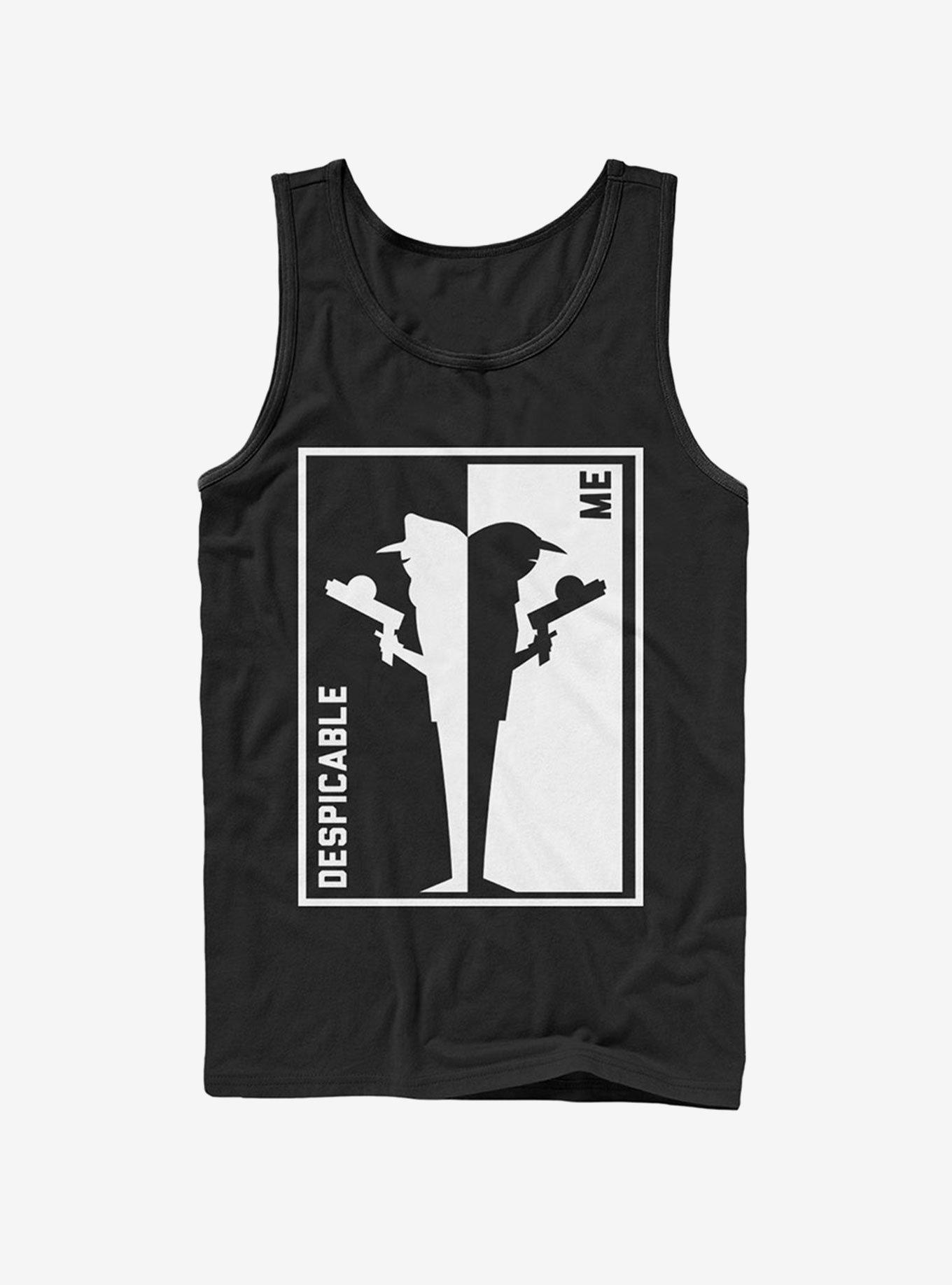 Dru and Gru are excited to carry on the family legacy of villainy with the Despicable Me 3 Brother Trouble Frame Men's Tank Top. Gru and Dru are featured back to back in black and white silhouettes on this awesome Despicable Me 3 muscle tee.