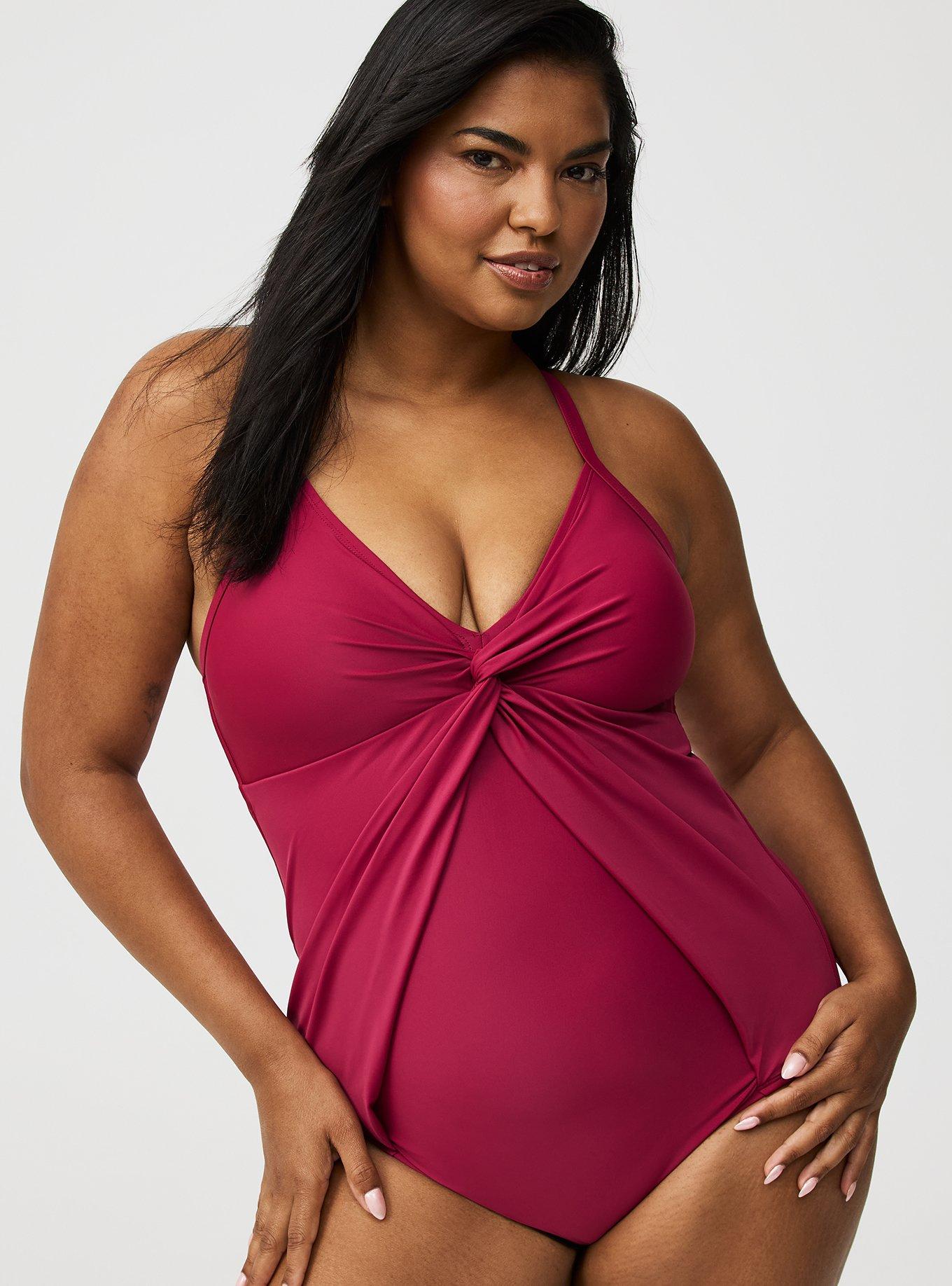 Wire-Free Twisted V-Neck One Piece Swimsuit