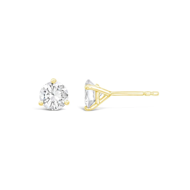 Timeless and radiant, these New Brilliance diamond studs feature two lab grown diamonds totaling 2.00 CTW. Each round‑cut diamond is set in a classic four‑prong 10K yellow gold setting designed to maximize light reflection and showcase exceptional sparkle. The sturdy screw‑back posts offer added security, making these earrings ideal for everyday wear or special occasions.