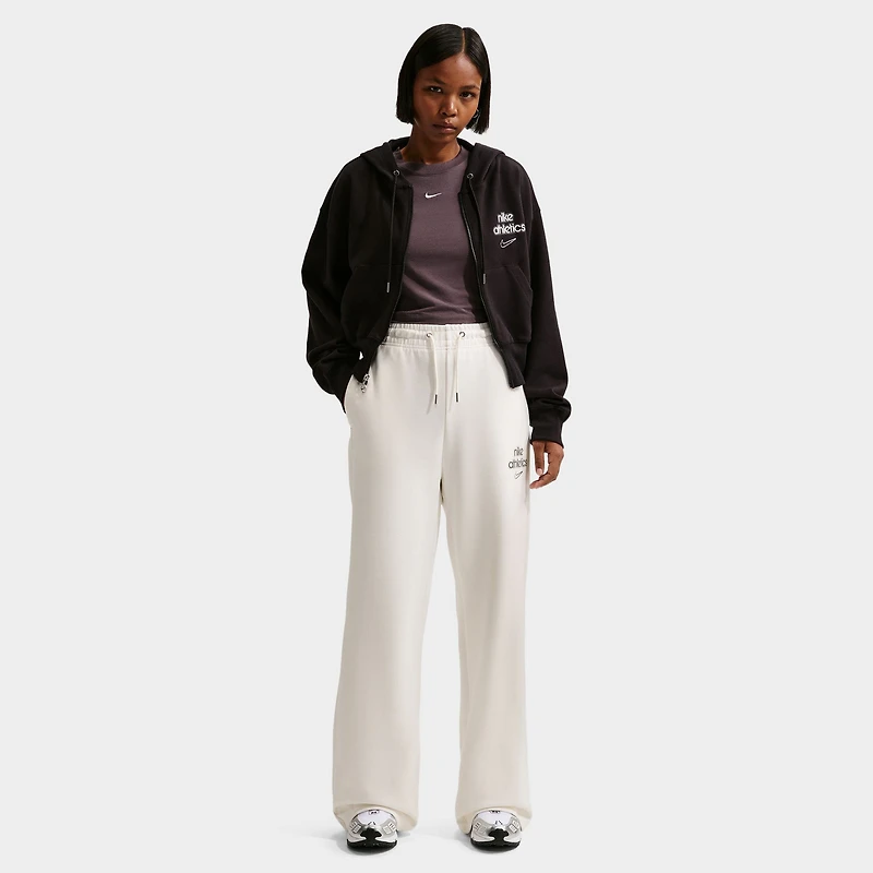 Effortlessly blending comfort and style, the Nike Women’s Highrise Wide Leg Pants in Sail bring a modern twist to everyday loungewear. With their soft fleece feel and flowing silhouette, these pants are perfect for casual days, cozy nights, or anywhere in between.