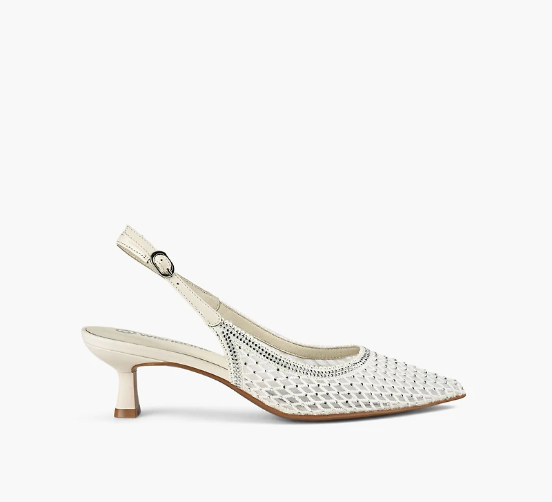 - Timeless slingback heel for versatile styling.